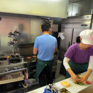 ハンバーガーショップの厨房排気臭