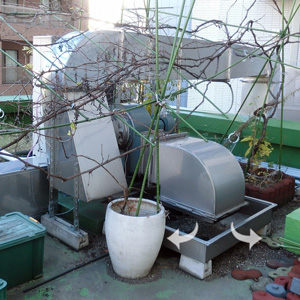 排気口は4階の屋上にありますが、周囲を10階建てビルに囲まれ、そのうち1棟のマンションから苦情が発生していました。