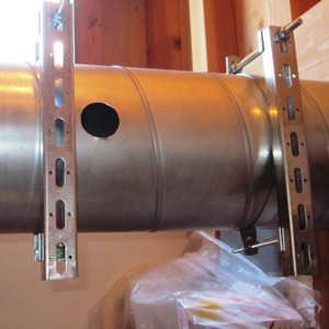 こちらの厨房排気ダクトは丸ダクトですが、ダクトに直付け可能な機種を選定し、