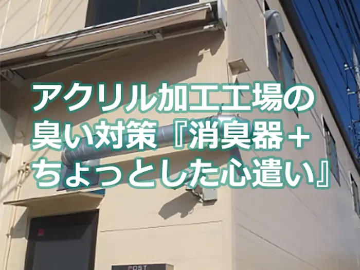 塗装工場から排出される塗装臭。民家側にニオイが広がらないよう脱臭装置を設置しました。手元スイッチで必要な時だけ運転でき経済的です。小型の消臭器を使うので設置スペースのない現場でも対応できます。