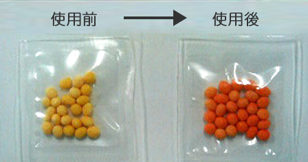 有害物質を吸着するとビースの色が、うすいオレンジから濃いオレンジ色に変わります。お取り換えの目安にしてください。